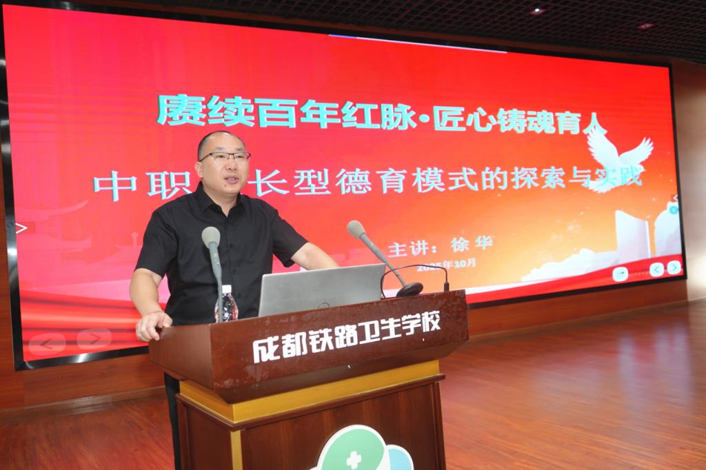 遂宁市职业技术学校党委书记徐华,结合学校实际,围绕《赓续百年红脉·匠心铸魂育人——中职生长型德育模式的探索与实践》主题,分享学校探索独具特色的德育模式经验。