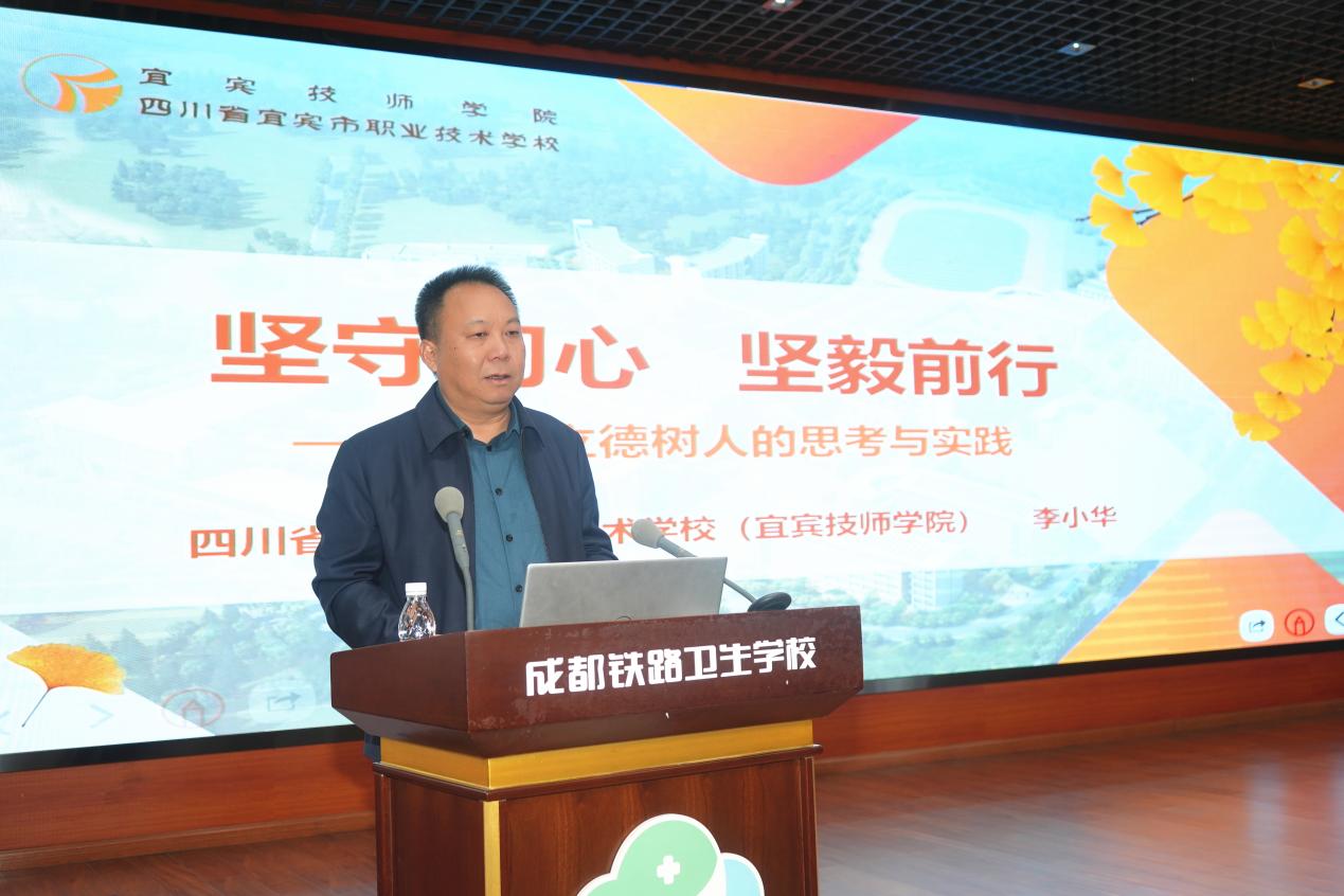 10月13日下午,宜宾市职业技术学校党委书记李小华,以《坚守初心坚毅前行——关于立德树人的思考与实践》为主题,深入剖析了立德树人在中职教育中的核心地位与实践路径。
