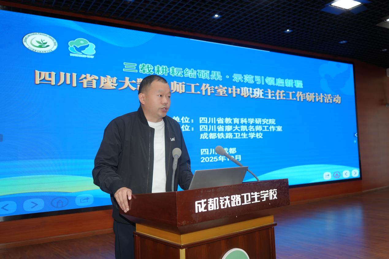 为贯彻落实《四川省中小学省级名师名校长工作室建设实施办法(试行)》要求,系统总结四川省廖大凯名师工作室三年建设成果,推动中职班主任队伍专业化发展,2025年10月12日至14日,四川省廖大凯名师工作室中职班主任工作研讨活动在成都铁路卫生学校举行。