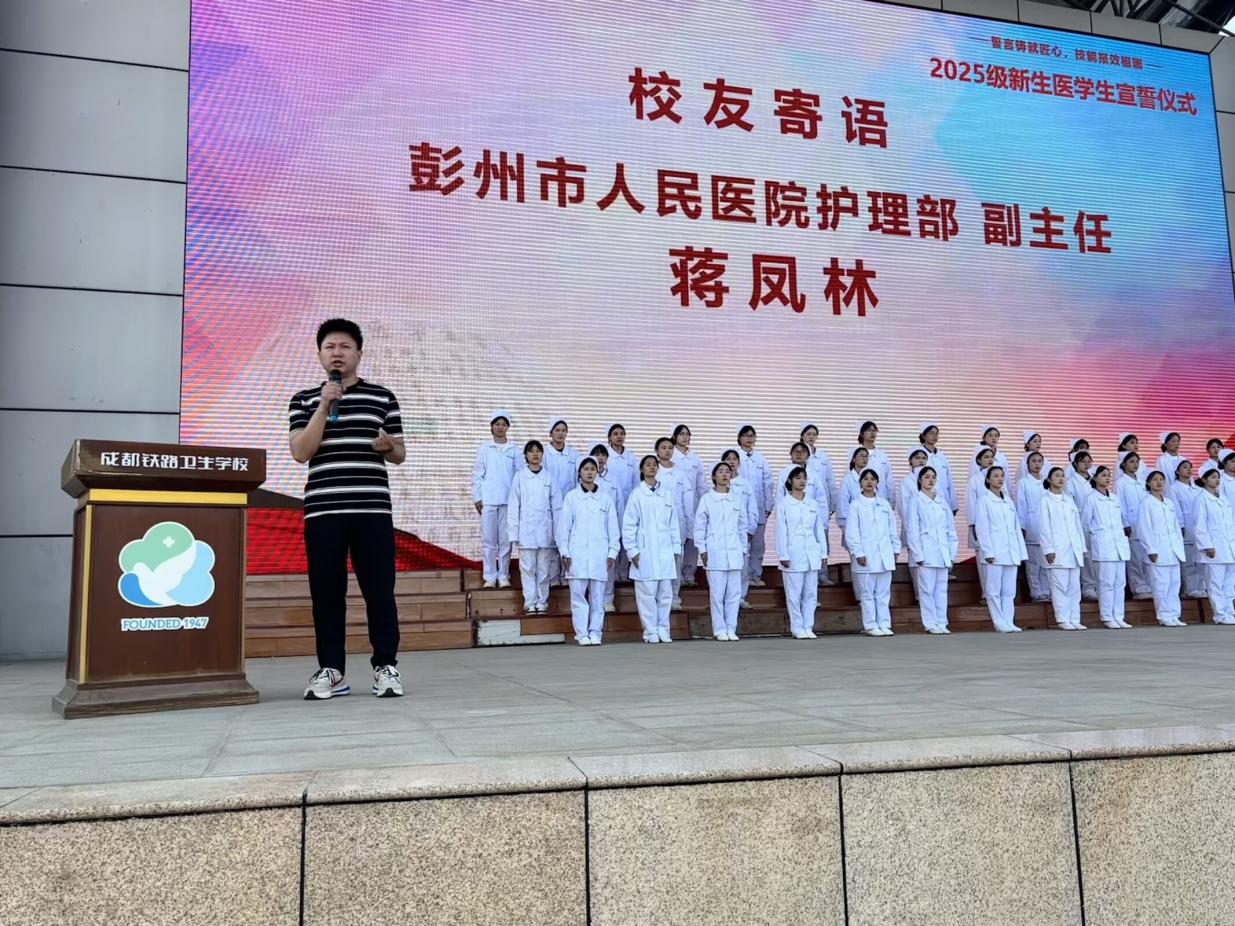 为深入贯彻国家职业教育方针,引导学生坚定理想信念、磨炼扎实本领、立志报效国家,营造“崇尚技能、学习技能、投身技能”的优良氛围,加强医德医风与专业思想教育,培育学生对医学事业的庄重感与责任感,2025年9月24日下午3:30,成都铁路卫生学校在学校操场隆重举行以“誓言铸就匠心,技能报效祖国”为主题的2025级新生医学生宣誓仪式暨“技能成才,强国有我”主题教育活动。