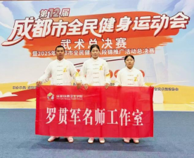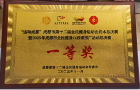 11月23日,第12届成都市全民健身运动会武术总决赛暨2025年成都市全民健身八段锦推广活动总决赛圆满落幕!我校罗贯军工作室成员李娟、林虎两位教师带领学生组队参赛,在全市23支优秀队伍的激烈角逐中脱颖而出,凭借过硬实力斩获一等奖!为学校、郫都区赢得了荣誉!