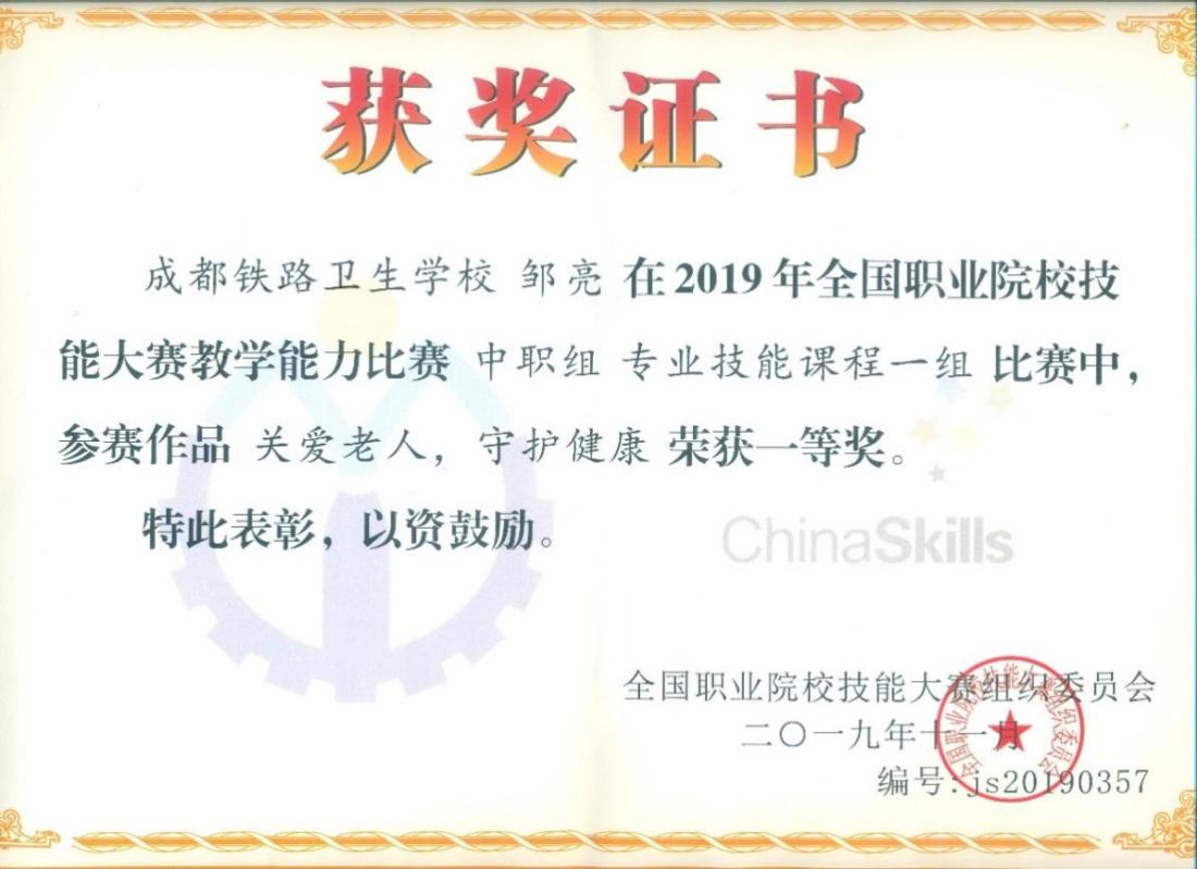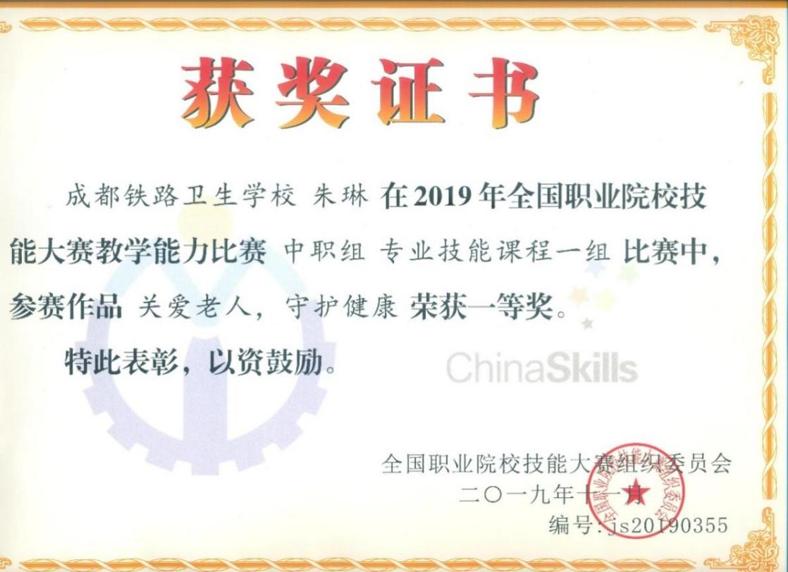 三、学生参加技能大赛 为进一步增强我校护理专业学生的操作技能和实践能力,并为学生提供相互学习的交流平台,护理专业组织学生参加国家、省级、市级护理技能大赛,20余人获一等奖、7人获二等奖,2人获三等奖,20余名教师获“优秀指导教师奖”,学生技能大赛成绩位居省内同类院校首位。