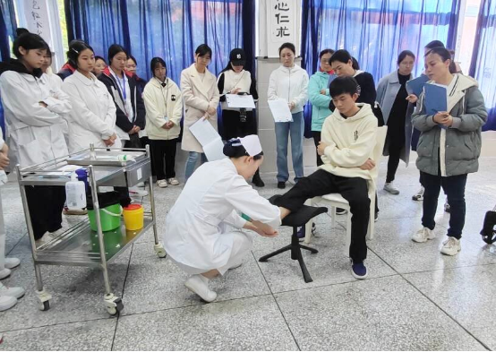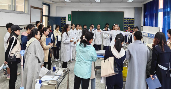 2023年11月16日,护理专业党支部在弘景楼103、105教室开展了以“四川省护理技能大赛模拟赛”为主题的主题党日活动,做好我校学生参加2023年四川省职业院校技能大赛的赛前准备,省赛指导老师、基护组老师及外科组老师到场进行评分,其他课程组老师及护理专业部分学生到场观摩。