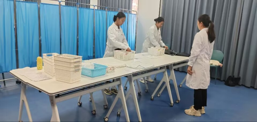 为保证学生能取得优异成绩,护理专业教学部组织教师进行培训计划、调整内容、授课时间、课堂管理等教研活动,教师们克服各种困难,充分利用课余时间进行理论培训及实操练习,解答学生疑问。
