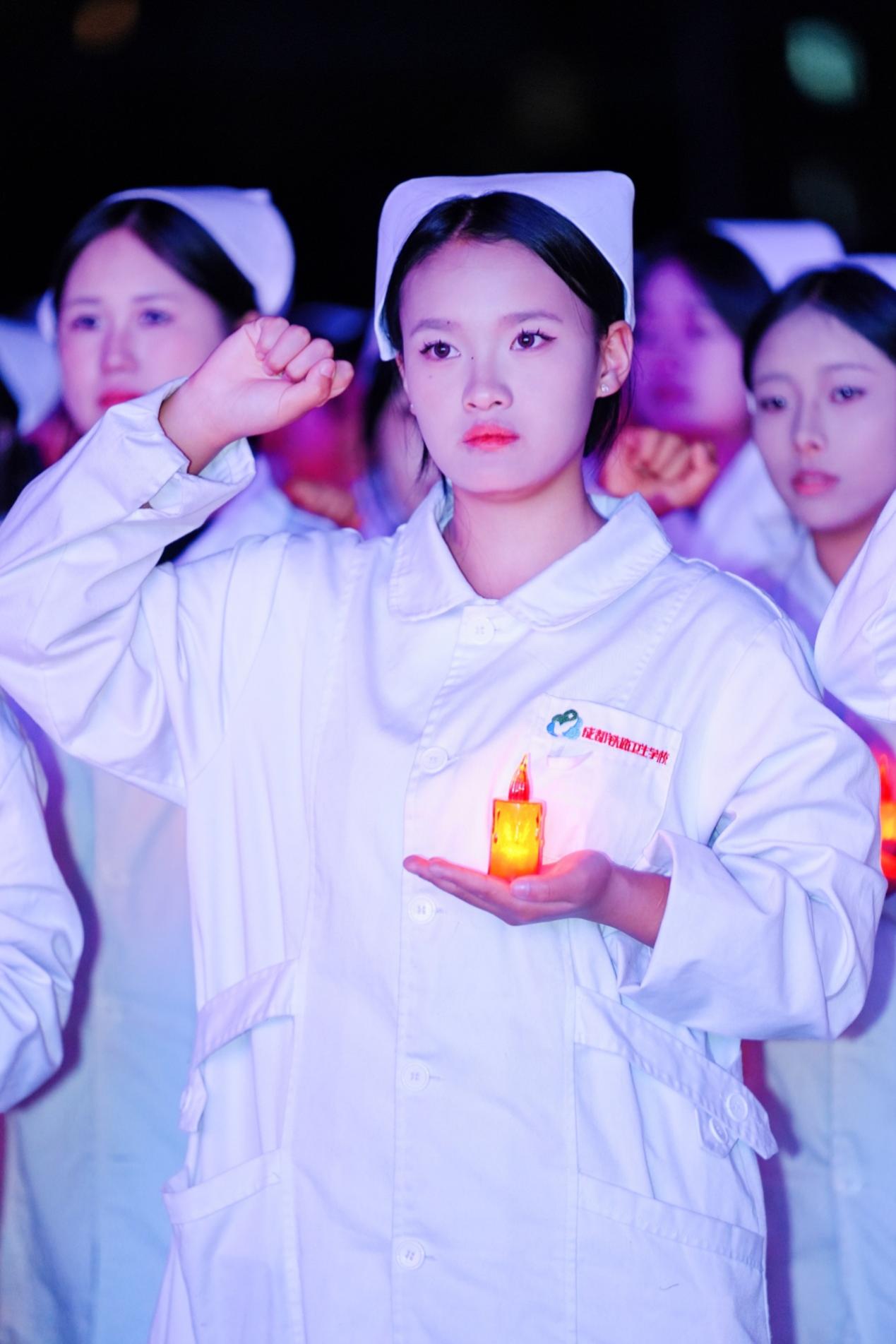 仪式在悠扬的旋律中拉开帷幕,现场灯光渐暗,象征南丁格尔精神的烛光依次传递,照亮全场。学生们面带微笑,接受圣洁的燕帽,接过“南丁格尔”的责任,点燃象征南丁格尔精神的烛火,仪式庄严而神圣。