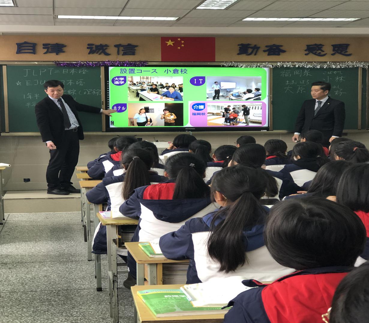 2019年3月19日,日本大原学园校长三好先生、课长小林先生以及留学担当荀老师一行访问我校,为今年即将进入出国预备班的学生召开说明会,并在16级定向班学生中进行面试选拔。