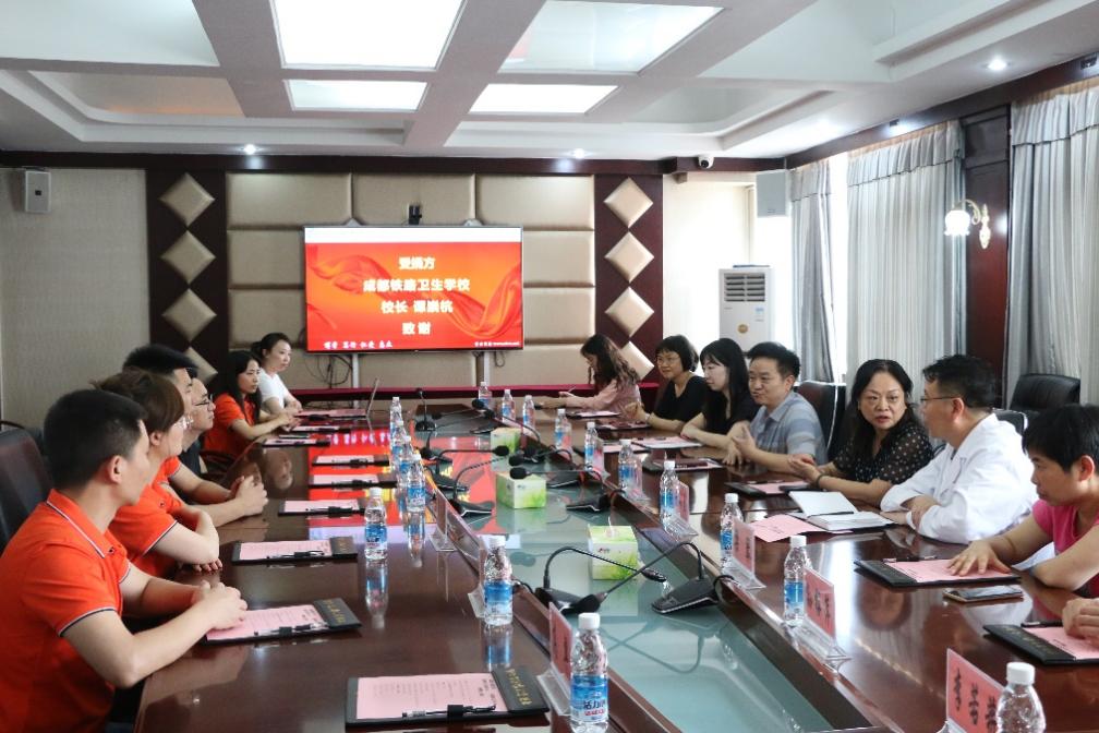成都市精艺牙科技术开发有限公司董事长殷发兵及企业代表,成都铁路卫生学校校长谭崇杭、副校长符莹、教务科科长、实训基地负责人、专业教师代表和学生代表出席了捐赠仪式。