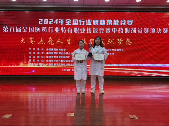 在2024年11月1-4日举办的第八届全国医药行业特有职业技能竞赛中,我校22高职药剂1班张思妍廖芹缘两名同学秉持敢拼能赢的精神,展现出了良好的职业技能与职业素养,获得个人三等奖,同时我校获得学生组团体三等奖。