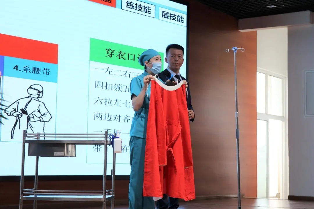 今年的四川省现场决赛名额较去年减少近一半,竞争激烈,成铁卫校7支参赛团队进入现场决赛,并在153支队伍中脱颖而出,马蕾、李绍慧、邹亮三位老师的参赛团队位列小组第一。其中,吴玲玲参赛团队的才华老师,受邀在闭幕式上进行“穿无菌隔离衣”无学生教学片段展示,才华老师通过改良隔离衣、编制口诀,有效进行了操作示范,且操作娴熟、规范,获得现场一致好评。