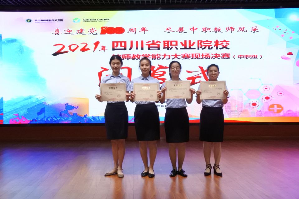 6月23日,“2021年四川省职业院校教师教学能力大赛(中职组)现场决赛”在成都铁路卫生学校圆满落幕,来自全省各市州153支教学团队,近600名选手进行了激烈角逐,成都铁路卫生学校7支参赛团队凭借过硬的专业技能和精彩的现场答辩,最终从153支队伍中脱颖而出,获得一等奖5个,二等奖2个的好成绩。