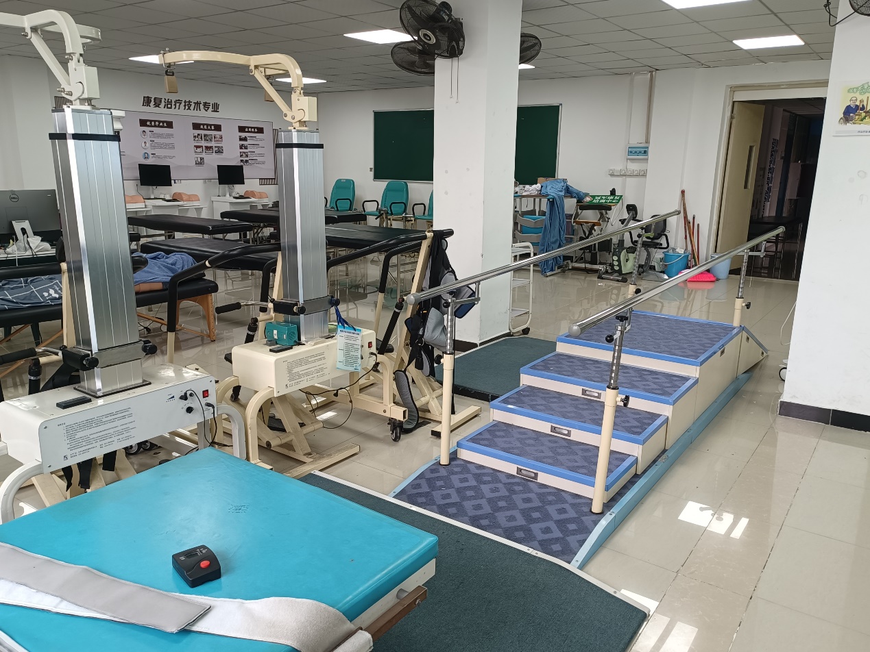 七、校内实训条件 1.实训室设置 本专业校内实训基地应设置康复评定实训室、作业治疗实训室、运动治疗实训室、言语治疗实训室、心理咨询实训室、物理因子治疗实训室、中国传统康复实训室、康复工程实训室、临床康复实训室、模拟社区康复中心,每室建设面积≥60㎡。 2.主要实训设备 校内实训基地的实训仪器设备配置满足培养学生职业技能的需要,主要实训仪器设备(以40人/班标准配置)详见附件2教学条件报告。 3.实训基地功能 康复治疗技术专业校内实训基地配备了先进的教学仪器设备,融“教、学、做”为一体,满足培养学生康复治疗技术职业技能和综合素质的基本需要。学生在校期间,通过系统的职业技能训练,加深了专业基本理论和专业知识的理解,熟练掌握康复评定、运动治疗、作业治疗、物理因子治疗、言语治疗和中国传统康复治疗技术的基本技能,培养学生的临床思维、医患沟通能力与实践操作能力。 康复治疗技术专业校内实训基地还可为师生开展康复治疗技术科学研究、基层医疗卫生机构康复治疗技术从业人员职业技能培训和开展临床医疗服务工作提供条件,是一个集教学、科研、社会培训和医疗服务于一体的康复治疗技术实训基地。 4.专业课的实验实训开出率,达到教学计划和大纲规定的90%以上。