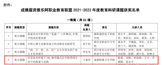 1.信息技术环境下PBL教学模式在中职药剂专业中的探索与实践 (重点课题)