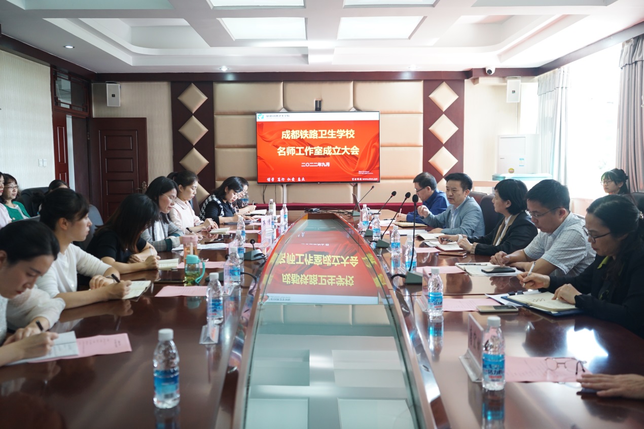 2022年9月28日下午2:30,成都铁路卫生学校名师工作室成立大会在学校北辰楼3楼会议室顺利召开,会议由学校教学副校长李勇同志主持,学校党委书记戴晓雪、校长谭崇杭、副校长宋健、唐宏彬等领导以及工作室领衔人与成员代表出席会议,四川省教育科学研究院职教所副所长尹毅与四川国际标榜职业学院副院长庄红受邀亲临指导。