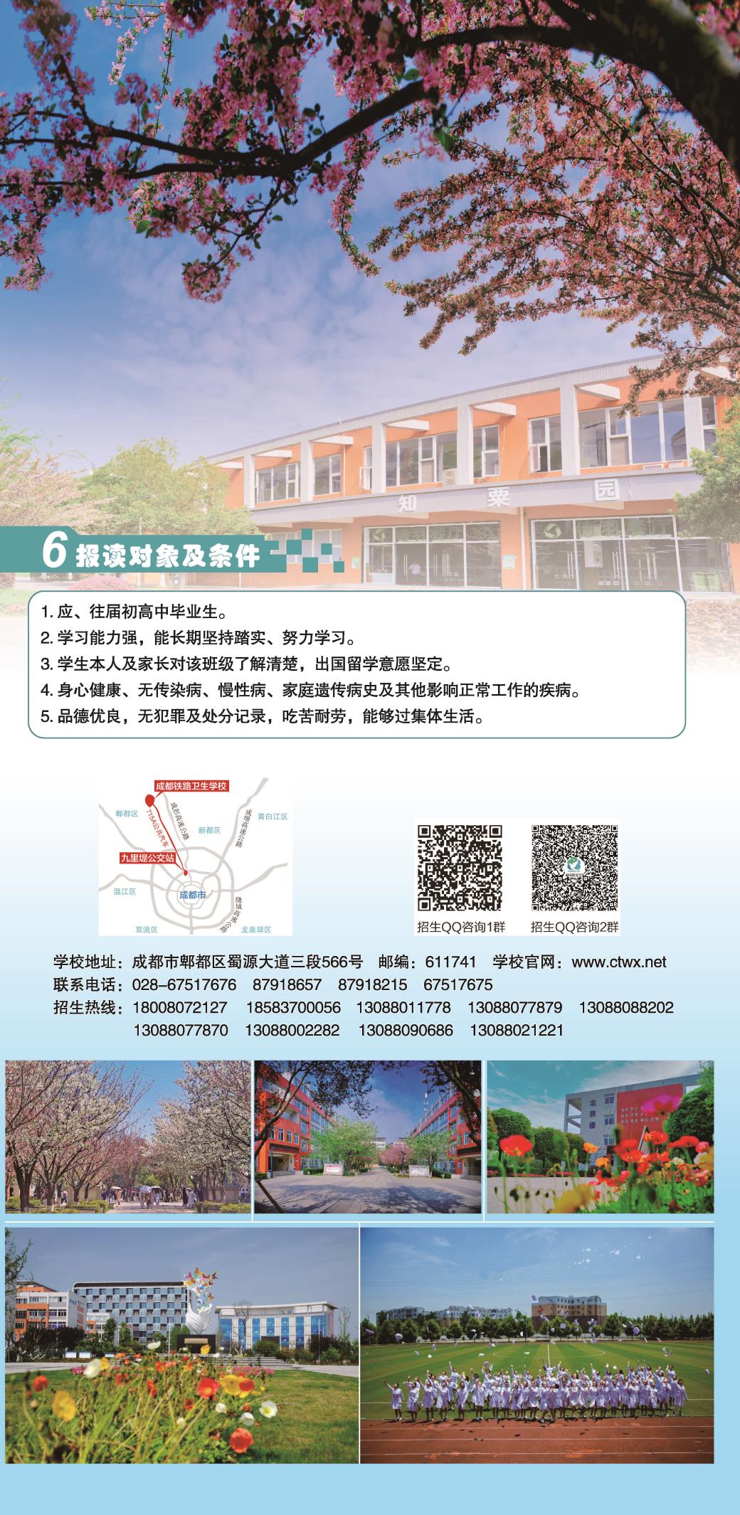 成都铁路卫生学校招就办北辰楼102(成都市郫都区蜀源大道三段566号)