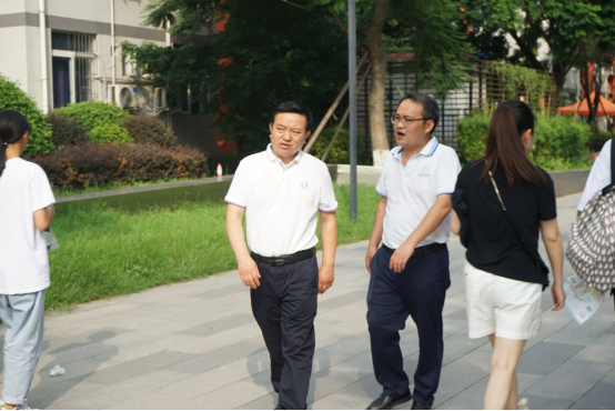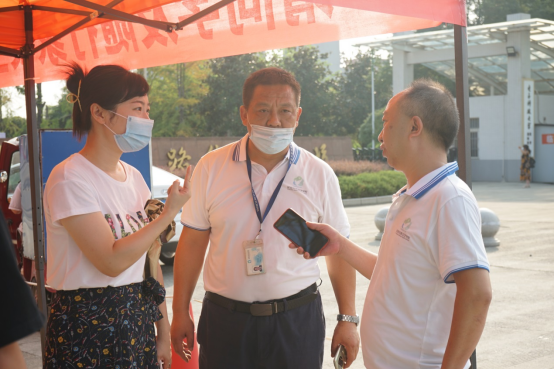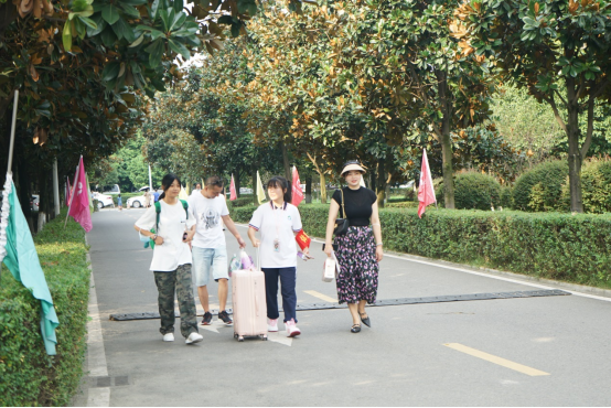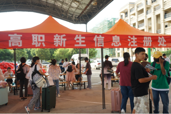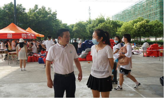 学校领导深入新生报到现场指导迎新工作。上百名学生志愿者也参与到迎新工作中,热情为新生及家长服务。