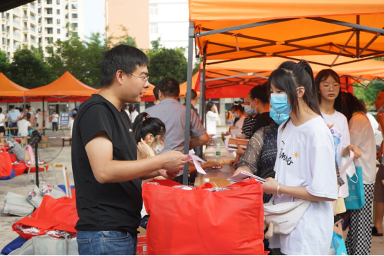 学校一直执行的是统一的公寓化管理标准,家长和新生们正在购买床上用品,宿舍生活老师、生活部同学正在接待新生,根据新生注册信息系统提供的分寝室情况,分发钥匙并引导新生找到宿舍。