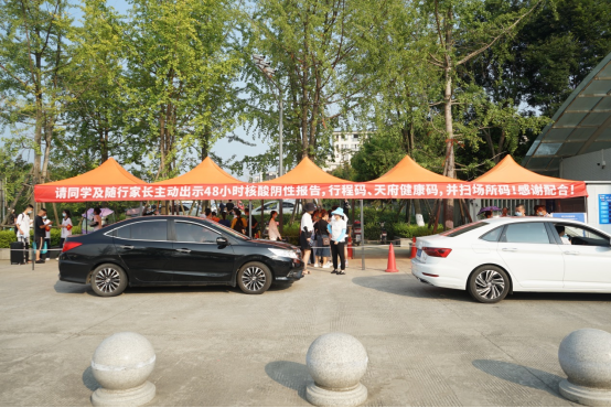 学校严格执行疫情防控措施,对进入校内的学生及家长,严格查验48小时核酸采样记录、行程卡、天府健康码,扫场所码并现场检测体温。对进入校园的车辆组织有序停放,保障校园人车安全。