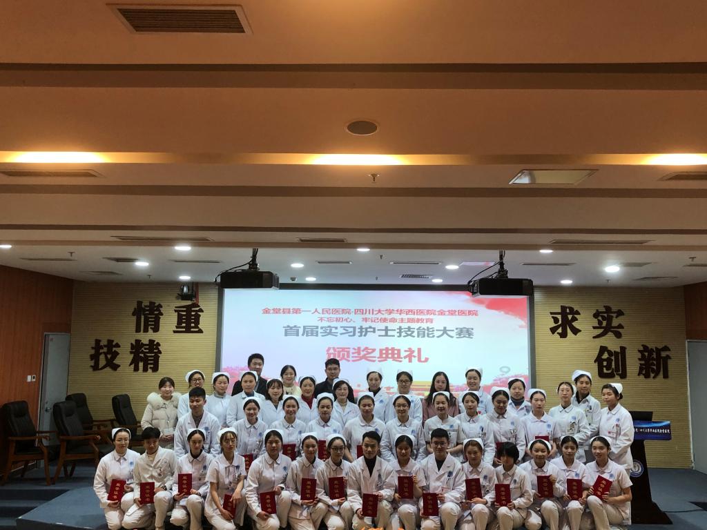 11月29日,金堂县人民医院举办首届实习护士技能大赛,我校王佳老师、石晓玲老师受邀担任大赛评委。比赛分为静脉输液组、静脉采血组两个项目,我校实习生陈小兰、燕虹荣同学获静脉输液组优秀奖,万苓岐、何若兰荣获静脉采血组优秀奖。
