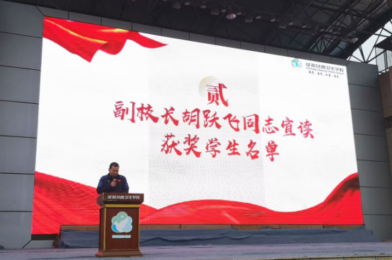 成都铁路卫生学校于2024年12月2日在学校操场举行了以“榜样力量 追光前行”为主题的2023-2024学年中等职业教育国家奖学金暨2023-2024学年第二学期学校奖学金表彰大会。全校共5000余名在校生,部分班主任以及家长代表参加此次活动。表彰大会由学生科副科长李昕老师主持,校长谭崇杭、副校长胡跃飞出席大会。