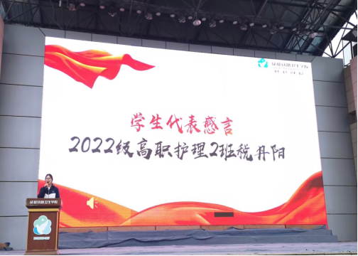 国奖获得者代表2022级高职护理2班税丹阳同学更是以自身成长经历与努力分享了自己的深切感悟,感恩家长的养育、国家政策的关爱、学校的培养、班主任及其他老师的悉心关怀,未来她将继续心怀感恩,逐光前行。