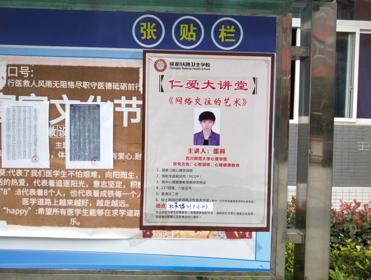 最后一个模块的主题讲座,是针对我们学校目前女生比较多,网络交往存在的一些疑惑或安全问题而展开,因为场地安排的原因,讲座将于今日在北辰楼101教室开展,届时,将由我们川师团队的邵老师讲解带领,让同学们安全的在网络世界里畅游。