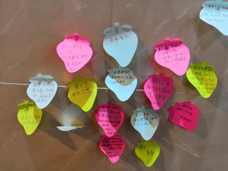 活动的最后,大家彼此合影留念。在心形纸片纷纷写下了对此次培训的想法、收获和建议,也留下了彼此的祝福和感恩。