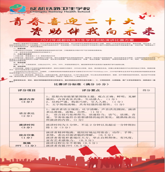 青春献礼二十大 助学筑梦向未来——成都铁路卫生学校举办2022年资助演讲比赛
