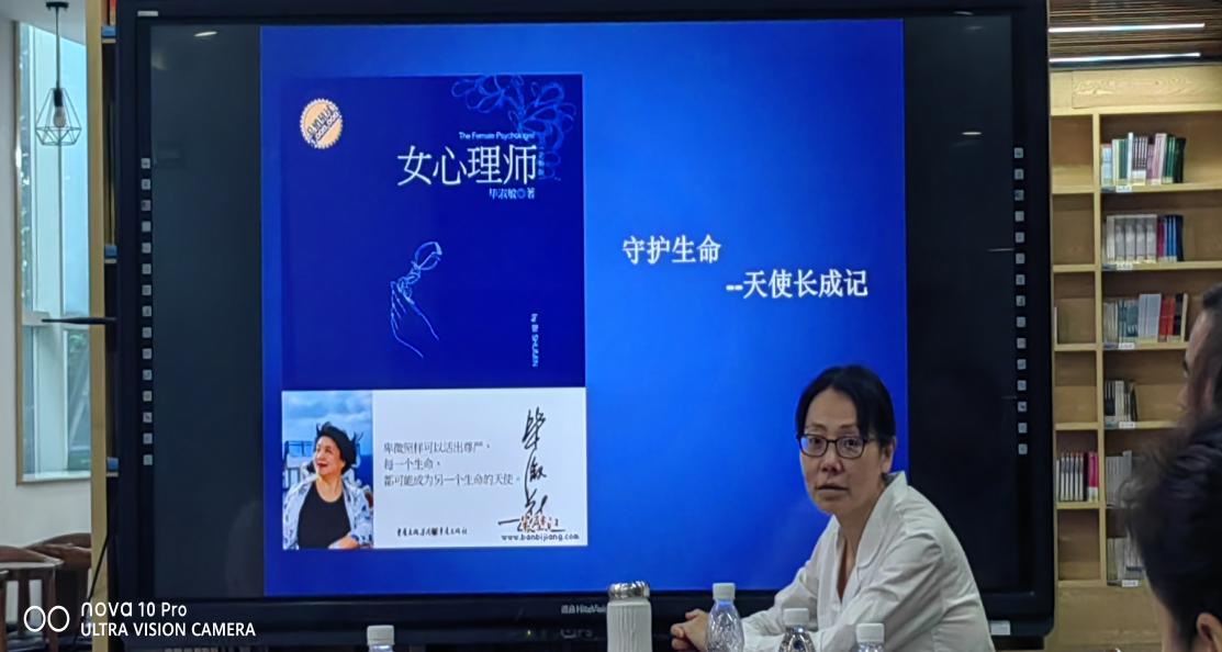 第二位分享者贺芸老师,从毕淑敏同名小说《女心理师》主人公的成长为线索出发,讲述了主人公从“打工女孩”蜕变成“女心理师”的经历。谈到职业发展以及心灵成长,分享自己通过阅读后的感受,作为教师我们应该用主人公的精神感染我们的学生,引导学生主动面对和解决自己的问题,不断激发内驱力,对生活对学习应该充满正能量。
