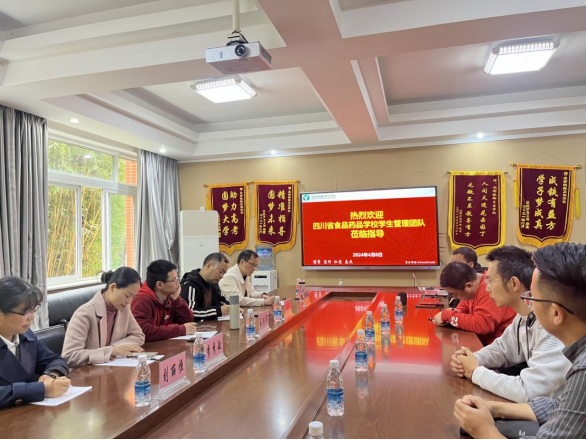 在这春明景和、生机勃勃的季节,为加强校际交流合作,达到优势互补、共同提高的目标。2024年4月8日,四川省食品药品学校学生科科长吴波一行5人到我校参观交流,我校学生科科长胡跃飞,副科长冯伯阳进行接待。