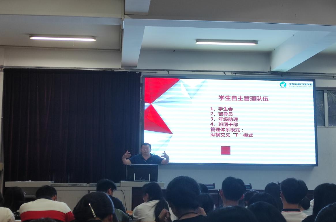 为充分发挥我校学生会、学生辅导员在自主管理机制中的作用,增强学校德育工作的针对性和实效性,进一步提高学生干部的思想修养、业务素质和工作能力。6月23日晚自习,学生科、团委举行了成都铁路卫生学校第三十届学生干部培训班开班仪式。学生科科长胡跃飞、校团委副书记罗于、年级老师徐静、24名学生会干部及60位学生辅导员参加开班仪式。