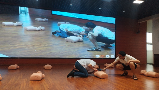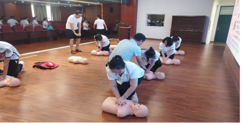 此次活动第三个环节,特别邀请到实训中心主任于小虎老师,给在场的各位工作人员带来一场实用而专业的急救知识培训。于老师选取学生容易发生的几种危及生命的情况,分别从气道异物梗阻、大出血止血包扎法、心肺复苏(CPR)、自动体外除颤器(AED)四个方面进行生动讲解。通过演示心肺复苏、海姆立克急救法等急救技能的操作步骤,以及邀请在场人员加入实践学习,亲身体验。通过“一对一”指导参与者操作,纠正错误的姿势,确保每位参与者都能掌握正确的急救方法。在于老师的耐心指导下,大家有信心能沉着准确应对未来工作中的突发应急问题。