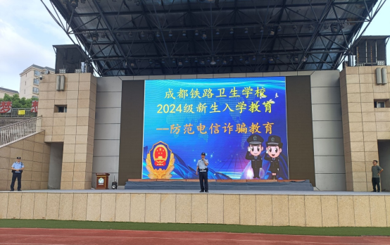 演练结束后,全体师生在操场集合,学校法制辅导员三道堰派出所杨盛林警官总结了此次演练活动,并对新生进行了防范电信诈骗的安全教育。教育引导同学们要有网络安全意识,提高防诈能力。