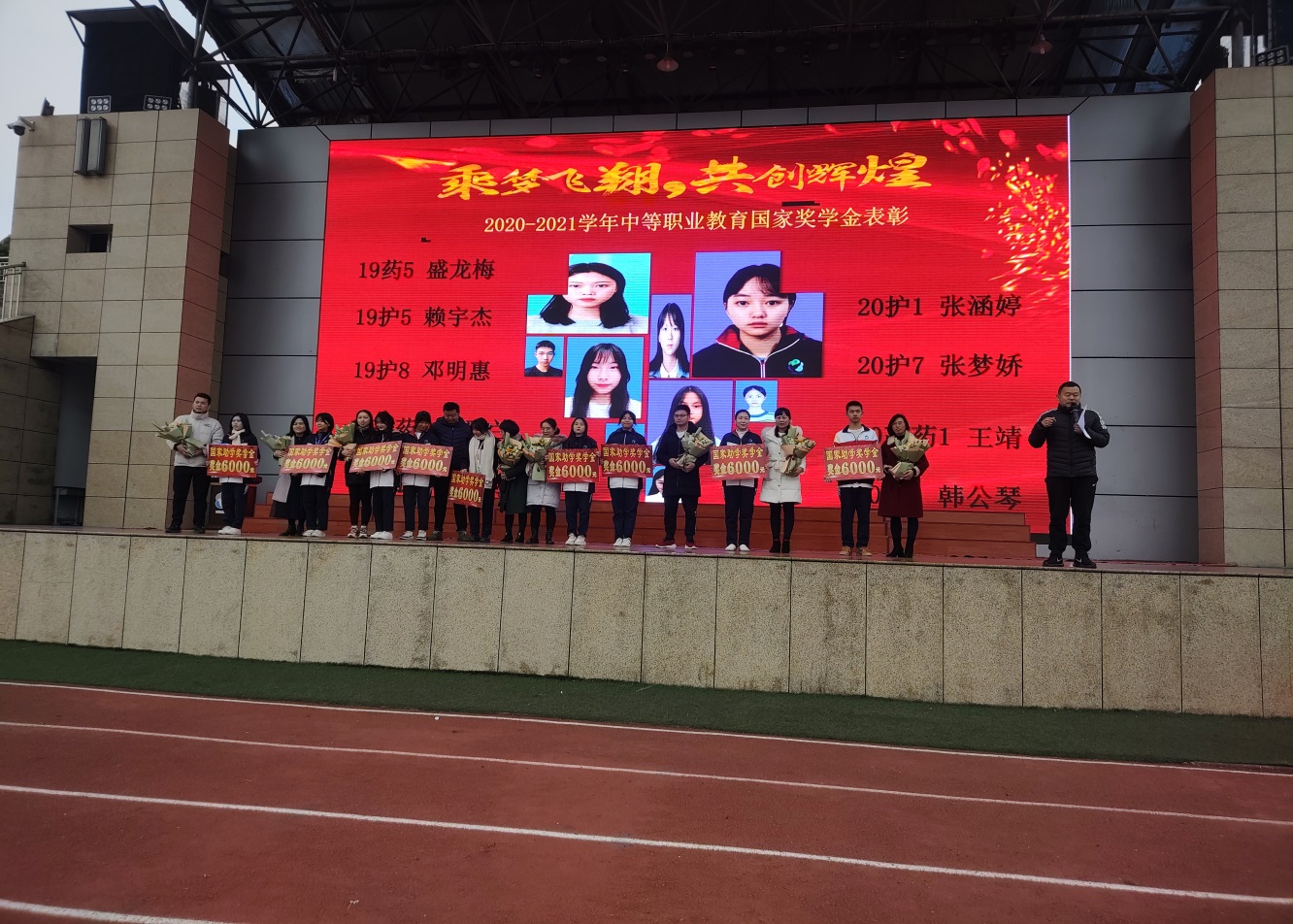 按照上级下达名额,成都铁路卫生学校共评选出2019级高职药剂2班杨雅兰、2019级护理8班邓明惠、2019级护理5班赖宇杰、2019级药剂5班盛龙梅、2020级高职护理1班张芯宇、2020级高职药剂1班王婧、2020级护理7班张梦娇、2020级护理1班张涵婷、2020级药剂1班韩公琴等9名学生为2020-2021学年国家奖学金获得者。并于2021年12月17日安全例会对以上同学进行了表彰。