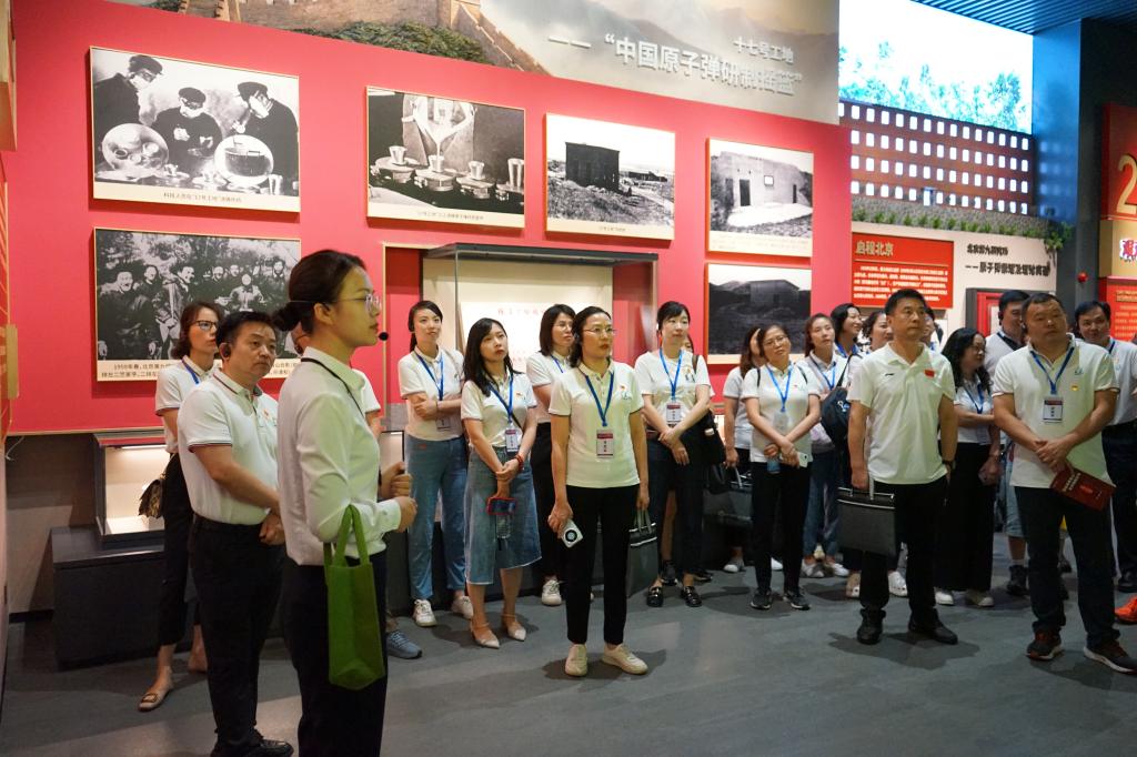 16日上午,学员们在两弹城博物馆里,通过一件件历史文物回顾先辈的艰苦与辉煌;在邓稼先故居前,全体党员敬献花篮,重温入党誓词;在英雄功勋纪念墙的绿荫下,学员们认真聆听两弹元勋的家国情怀;在静谧深邃的防空洞里,学员们体悟了科技先辈百折不挠、自强不息的奋斗精神,切实增强了学员们的使命感与责任感。