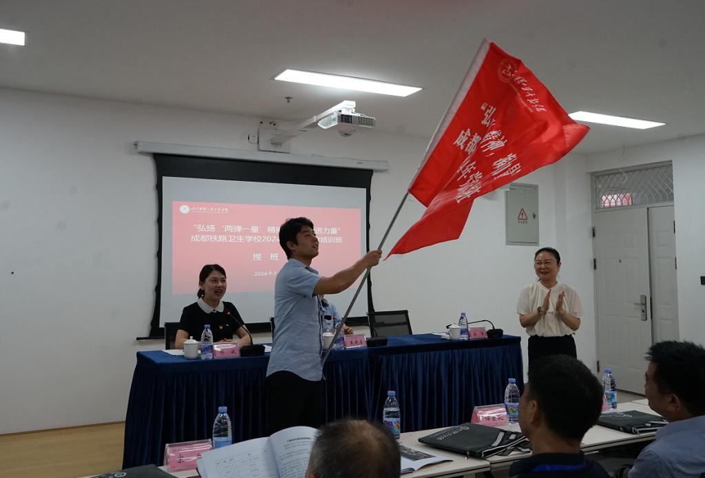 随后,刘涛副院长为培训班授班旗,学员代表接旗。