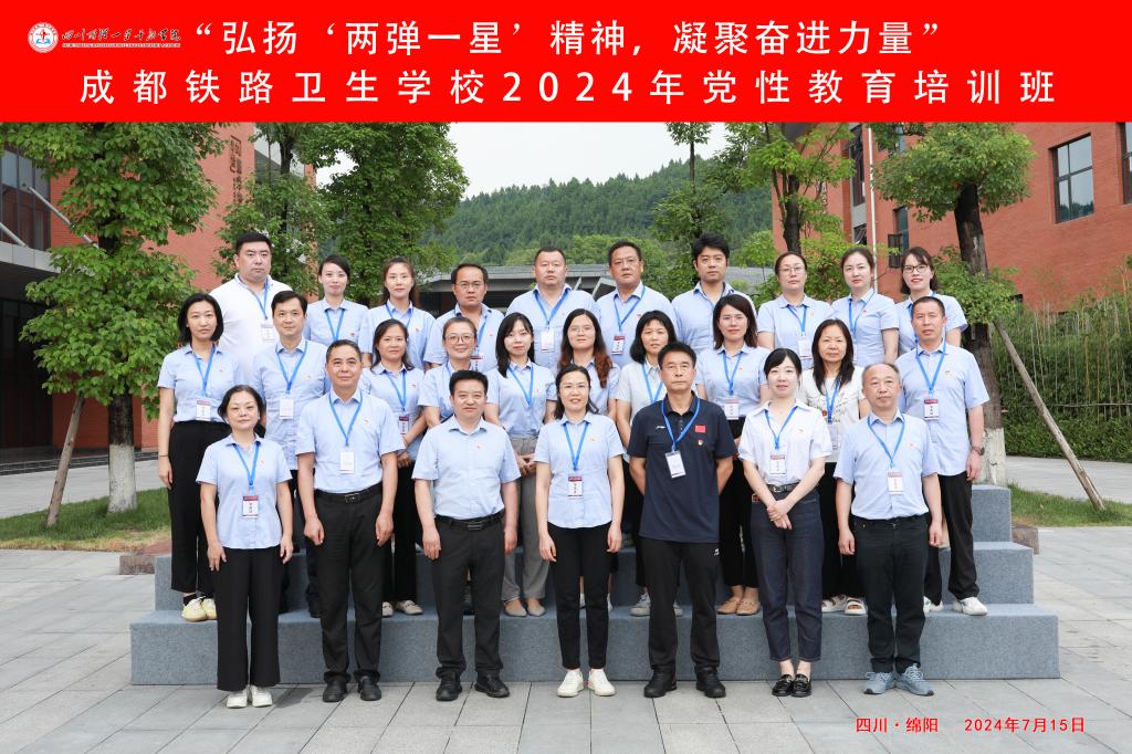 7月15日至17日,成都铁路卫生学校党委组织党委委员、中层干部、党支部书记、党务工作者赴四川两弹一星干部学院,开展“弘扬‘两弹一星’精神,凝聚奋进力量”党性教育专题培训,深入学习习近平新时代中国特色社会主义思想,开展党史学习和党纪党性教育,弘扬党的光荣传统和优良作风,为学校高质量发展汇聚思想力量。