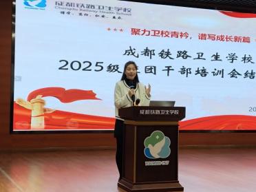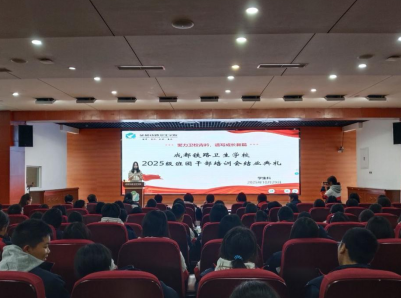 为锻造一支“有理想、敢担当、能吃苦、肯奋斗”的新生骨干队伍,成都铁路卫生学校于10月29日下午3:30在科技楼6楼成功举办“聚力卫校青衿,谱写成长新篇——2025级班团干部培训结业典礼”。本次活动标志着为期两周、共计23学时的集中赋能圆满收官,为新生班团工作开启了全新篇章。学校副校长胡跃飞、学生科副科长李昕、年级管理老师董飞出席,25级全体班团干部参与本次活动,本次活动由团委李泓利老师主持。