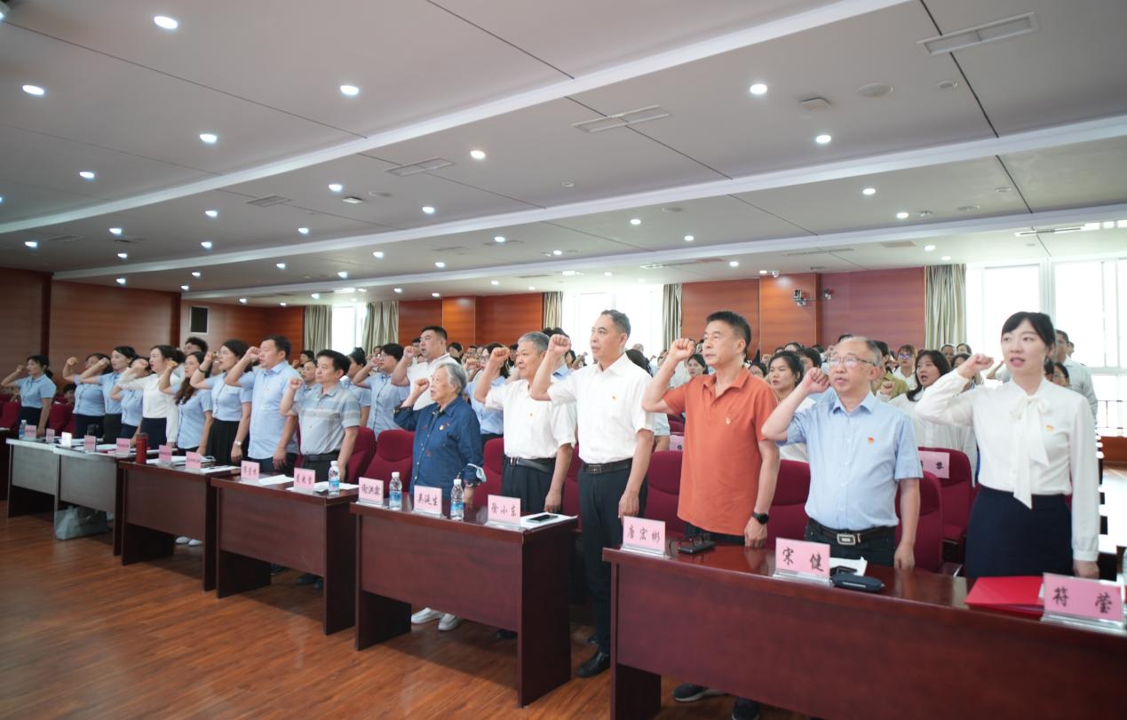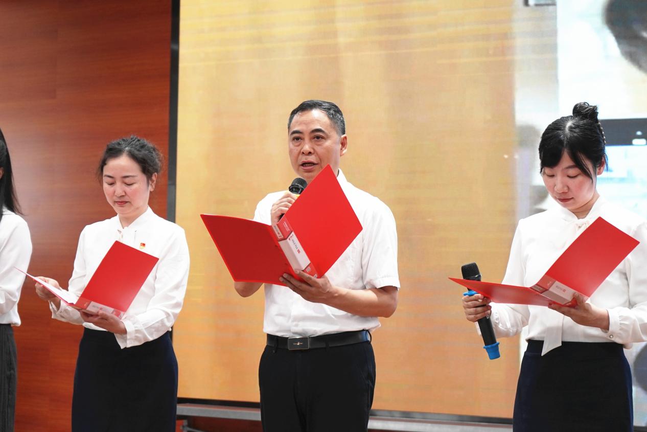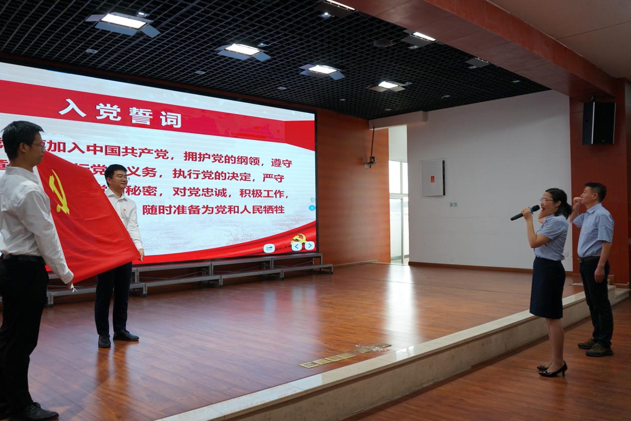 党委书记戴晓雪同志带领新党员同志,面向党旗,紧握右手,以饱满的姿态,高昂的声音郑重宣誓;在场全体党员重温入党誓词。重温自己对党的忠诚誓言,表达为党的事业奋斗终身的决心,增强不忘光辉历程、牢记初心使命、坚定跟党走的理想信念;慷慨激昂的誓言激励着大家以更加饱满的热情、更加昂扬的斗志,全力以赴投入到今后各项工作中。