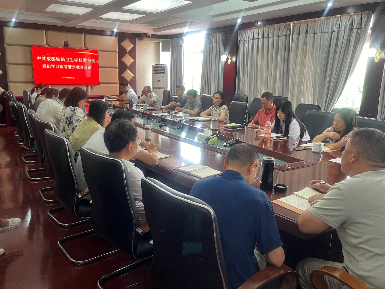 6月21日上午,成都铁路卫生学校党委召开党纪学习教育警示教育会,深入学习贯彻习近平总书记关于全面加强党的纪律建设的重要论述,教育引导全校党员干部受警醒、明底线、知敬畏。学校党委书记戴晓雪主持会议并讲话,学校校长谭崇杭传达了省委警示教育会精神、省卫生健康委党组党纪学习教育警示教育大会精神、院党委警示教育会精神,与会同志集中观看学习了医疗行业警示教育视频资料。