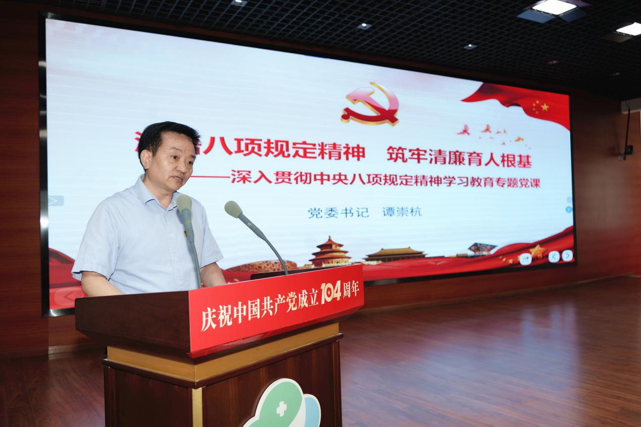 为推动深入贯彻中央八项规定精神学习教育走深走实,学校党委书记谭崇杭同志为大家讲授了一堂题为《深悟八项规定精神 筑牢清廉育人根基》的学习教育专题党课,通过追本溯源、学深悟透、以案为鉴、躬身实践等四个部分的讲解,让与会党员教职工对深入贯彻中央八项规定精神学习教育有了更深层次的理解和认识,并结合发生在身边的典型案例深度剖析违反中央八项规定精神的形式、危害,进一步督促全体党员要把学习贯彻中央八项规定精神与教育教学工作结合,将中央八项规定精神内化于心、外化于行,融入日常履职,严守纪律底线,强化责任担当,以坚定的信心、饱满的热情、优良的作风为学校内涵式高质量发展添砖加瓦。