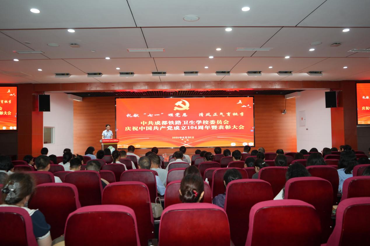 在中国共产党成立104周年即将到来之际,为重温党的光辉历程,传承党的优良传统,推动深入贯彻中央八项规定精神学习教育走深走实,6月26日下午,成都铁路卫生学校举行庆祝中国共产党成立104周年暨表彰大会。全校党员教职工、入党积极分子、民主党派、中层以上干部参加本次活动。