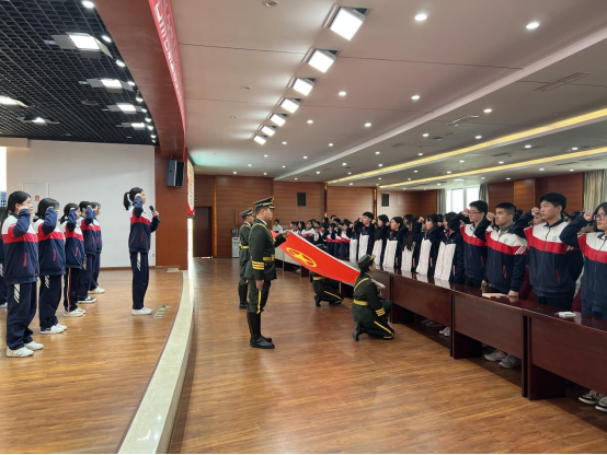 入团宣誓仪式在庄严的国歌声中拉开帷幕,每一位同学都以饱满的热情和激昂的姿态,唱响振奋人心的国歌。
