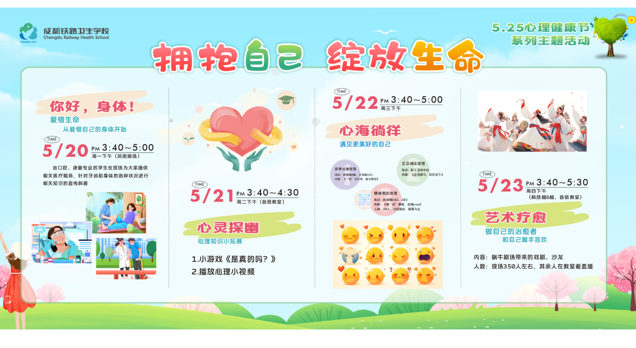 拥抱自己,绽放生命---成都铁路卫生学校第十四届525心理健康节主题活动