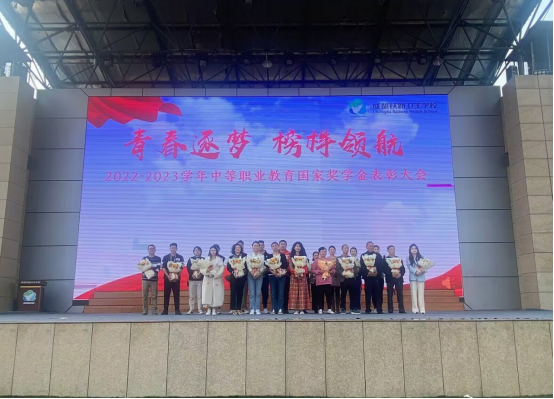 为激励广大在校学生勤奋学习、积极上进,向优秀榜样学习。成都铁路卫生学校于2024年3月22日在学生操场举办了以“青春逐梦 榜样领航”为主题的2022-2023学年中等职业教育国家奖学金表彰大会。