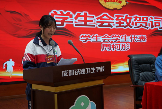 开幕式第三项:成都铁路卫生学校学生会学生代表周柯彤致贺词。