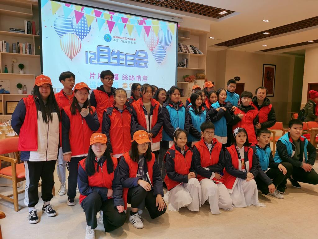 为发扬中华民族优良美德,弘扬德孝文化,践行社会主义核心价值观,12月21日,我校组织爱心社、公益社、康复社、爱乐社、乐舞社等社团27名学生到西蜀·银杏康乐园开展慰问活动。