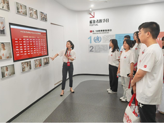 在参观过程中,同学们在讲解员的带领下,感受着展馆中的互动体验式科普空间,进一步了解无偿献血健康科普知识,更加熟悉自己身体里的血液,见证血液从一个生命走向另一个生命的旅程。