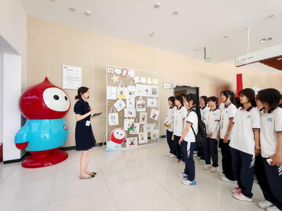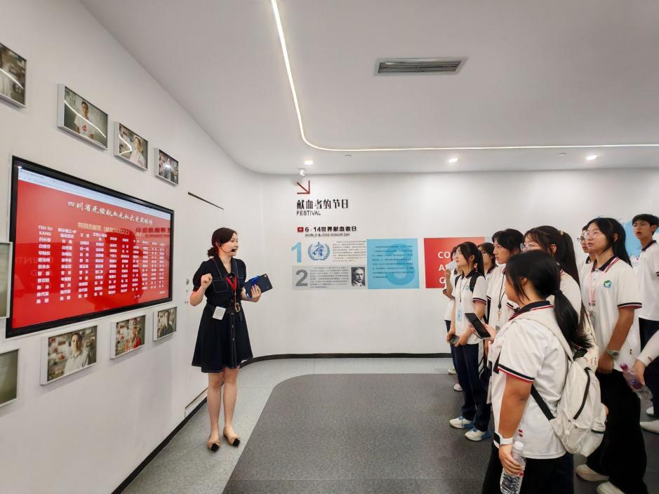 走进“热血成都”展厅,同学们认真倾听,陈老师娓娓道来讲述我们身边无偿献血志愿者故事,感受万涓热血汇聚成河,无私奉献点亮生命的精神品质。