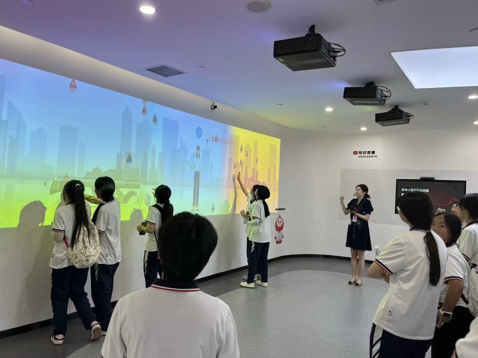 紧接着,在陈老师的带领下,同学们走进科普馆第一展览,同学们在360度全息投影成像中感知人体血液分布,通过观看270度裸眼3D小电影,体验红细胞的一生,了解血液组成。