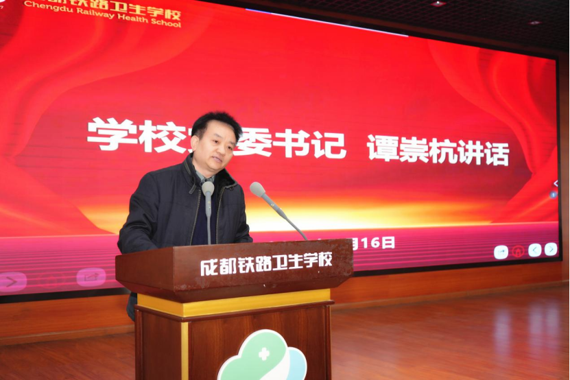 最后,党委书记谭崇杭讲话。他充分肯定了过去一年学校各项工作取得的成绩,并对全体教职工提出殷切期望,号召大家在新的一年里继续团结奋斗、务实创新,为学校发展再立新功。